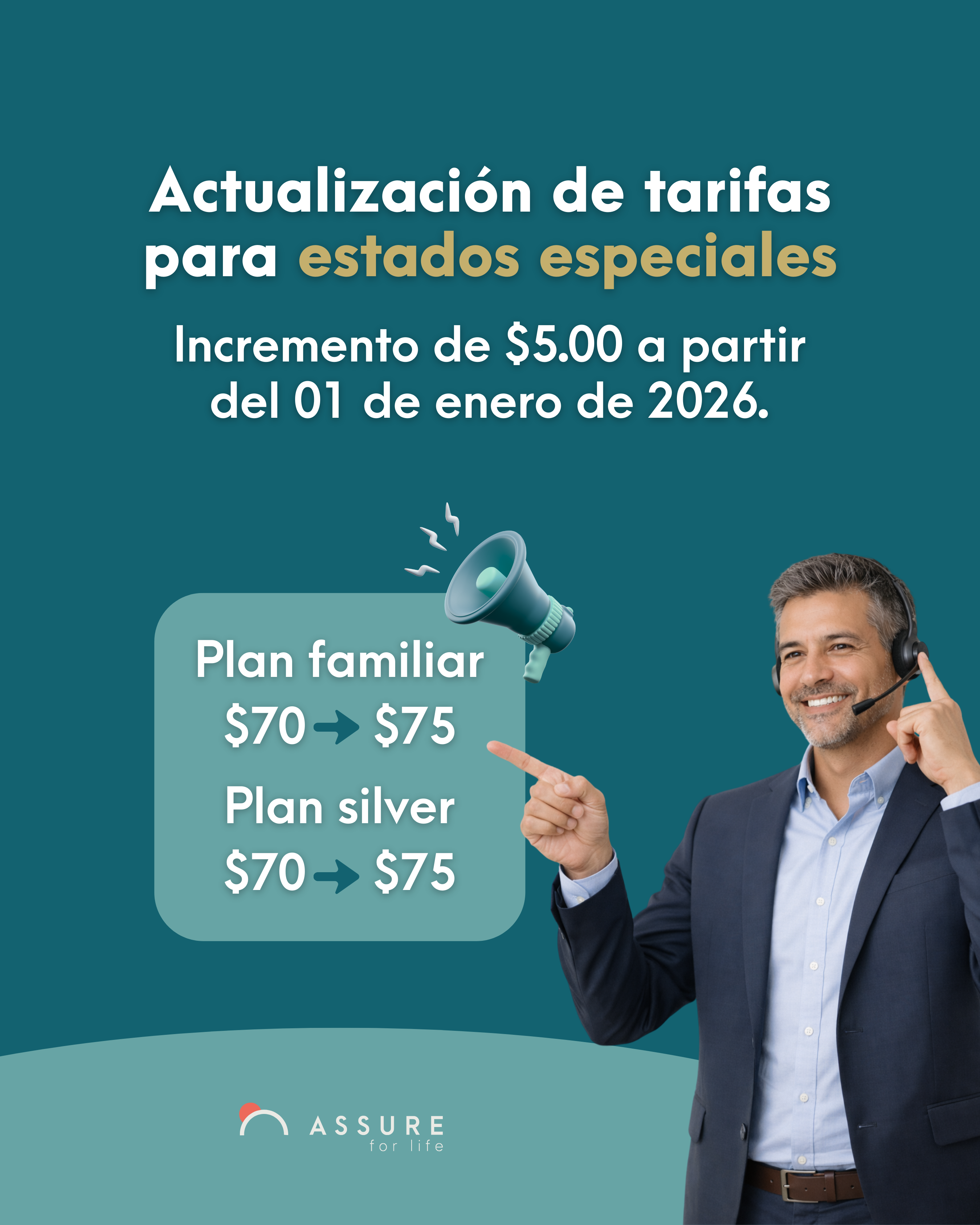 • Si la mayoría de los miembros —o cualquier miembro mayor de 65 años, o el titular— reside en estados con tarifas regulares, el valor de la membresía familiar será de $85.00.
